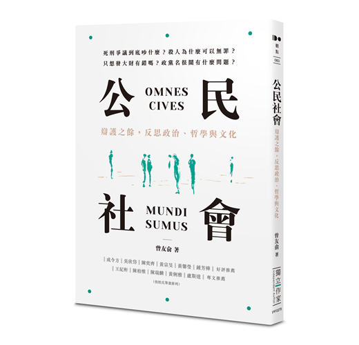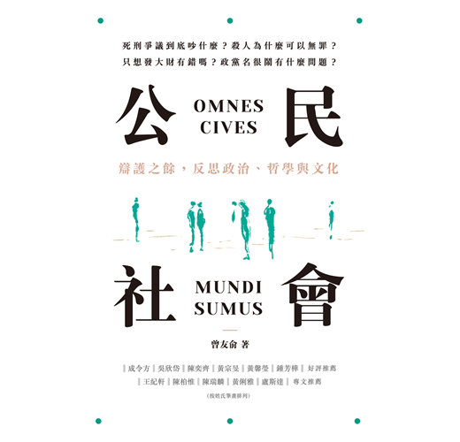 今年六月初,曾友俞律師與我聯繫,告知《公民社會:辯護之餘,反思政治、哲學與文化》即將付梓,希望我撰文推薦;聞訊後,二話不說,欣然答應。友俞與我的相識,是在大學課堂上,熟識則是在課餘。友俞在校期間,認真向學,自毋庸多言,更重要的是:大學時期,友俞已熱切探究法律背後的思想,而非僅是法條表面的操作;研究所時期,進一步關懷社會或政治的議題,廣泛閱讀文史哲書籍。形成思想,與形成思想文字,是截然不同的事情;友俞願將年輕的思想,透過文字與眾人分享,誠屬可貴。