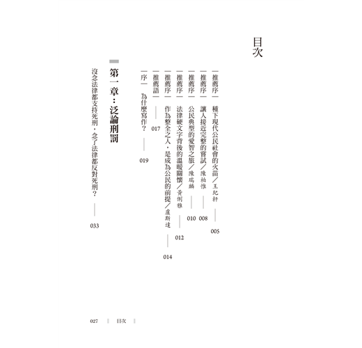 本來沒想到要寫什麼序,總覺得這是一件奢侈的事情:這份書稿是在平常的寫作之中摻雜了一些對於生活、政治以及本身專業領域的刑罰的思考,同時還有秀威接受我的投稿並願意幫我出版,才得以成書。這點我是受寵若驚的,畢竟在還不知道將來想做什麼的十六歲我想過當作家,不過那是一飄即散的日間遐想而已。而會說摻雜是因為這些東西不是我寫作的主要內容,我寫作的主要內容是書評,數量至今約有兩百多篇,正因為寫作的題材是這樣,我才思考起了我「為什麼寫作」這個事情。