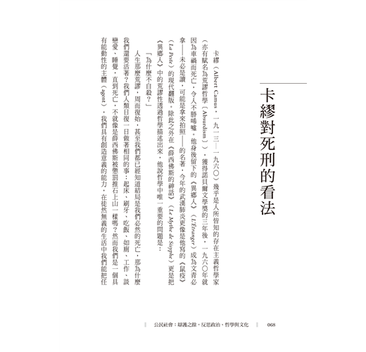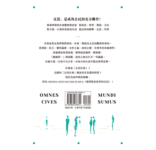 「將時事觀察與哲學思辨結合,娓娓道來,帶著讀者一起展開反省咀嚼的旅程。」──黃宗旻(文化大學法律系副教授)
