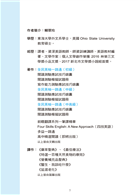 經歷:譯者、資深美語教師、師資訓練講師、美語教材編著、文學作家;個人文學創作榮獲2016林榮三文學獎小品文獎、2017新北市文學獎小說組首獎。
