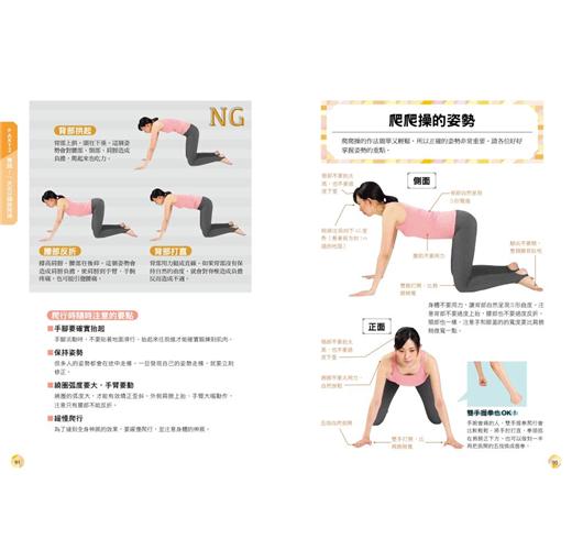 ◎「爬」中亦有大學問:從環境準備、方向確認、9個常見Q&A,完整說明「爬爬操」如何進行。搭配模特兒教學示範,跟著做就學會!