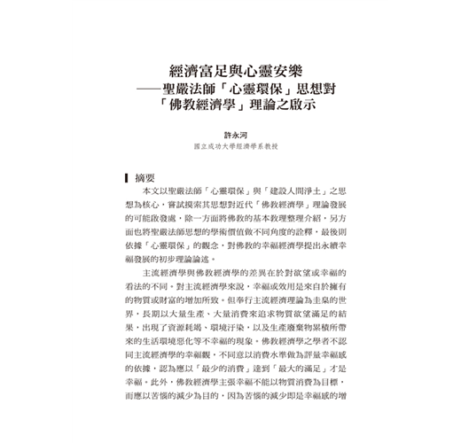 經濟富足與心靈安樂──聖嚴法師「心靈環保」思想對「佛教經濟學」理論之啟示 許永河