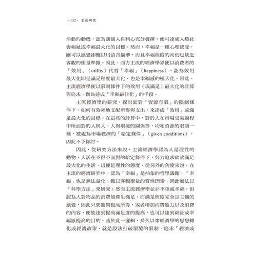 本文中回顧主流經濟學、佛教經濟學、心理學,以及希臘哲學的幸福觀,再參酌佛教的基本教理、太虛大師「五乘教」,以及聖嚴法師「心靈環保」與「建設人間淨土」的思想,建構佛教經濟學的幸福觀。最後依據聖嚴法師「心靈環保」的理念,提出「心靈環保國富論」的初步邏輯架構,說明一個追求經濟富足與心靈安樂的社會,如何實現永續發展的經濟生活目標。