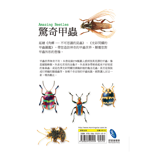 延續《角蟬-不可思議的昆蟲》、《光彩閃耀的甲蟲圖鑑》,帶您造訪神奇的甲蟲世界,顛覆您對甲蟲外型的想像。