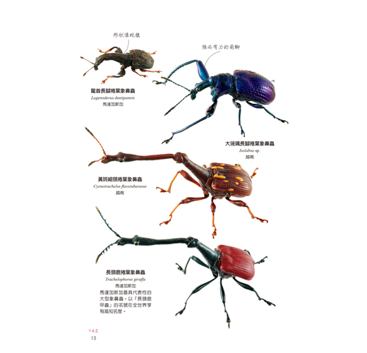 3.花費大量時間收集標本並仔細除塵,運用深度合成攝影方法,因此照片能夠看清楚每個物種的特色部位、紋理。