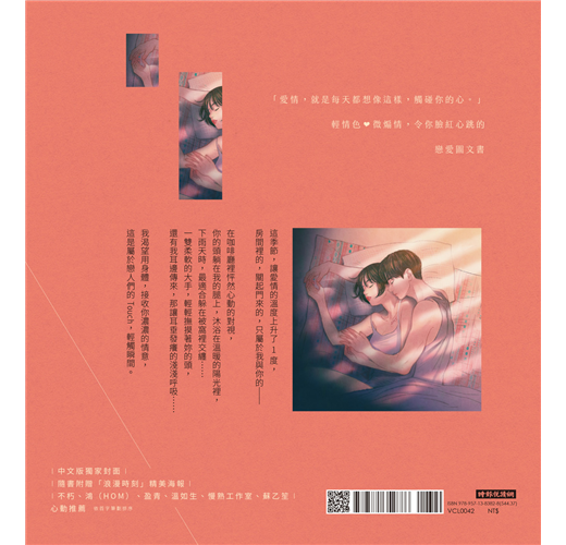 Zipcy老師的每一筆畫都蘊含著體溫,畫出那些專屬於戀人間的視線、只有在戀人面前才會露出的神韻。只要品嘗著這些充滿愛的生活切片,就能感受到幸福與溫暖,我想這就是能夠透過作品傳遞愛的魔法吧。──鴻(HOM)