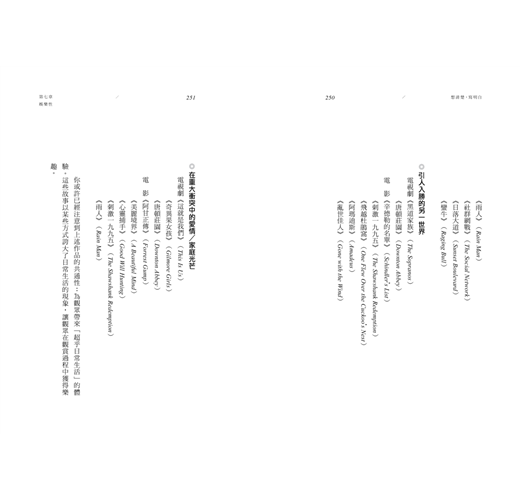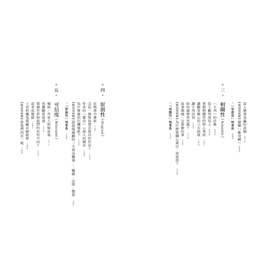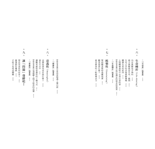 我在閱讀過程當中,經常覺得最喜悅也是最有收穫的,是作者將他的經驗化成可以參考的諸多原則,比如第三章的「讓觀眾揪心的八大困境」,第七章「最具療效的十帖娛樂良方」,第八章「讓觀眾感悟意義性的十種方式」等。這些原則是奠基在對大量具體故事案例的研究基礎上。如同一個個有效的故事路標,這些原則能協助想進入故事產業的創作者甚至製作公司,快速檢測自己是否在往對的方向前進。