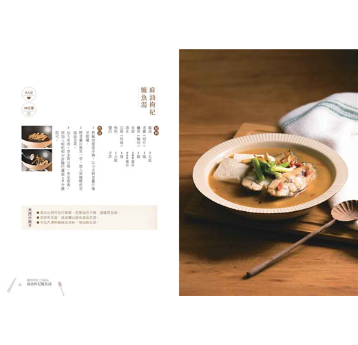 此外,本書特別企劃「古早味廚房」單元,請來4位廚齡資深的料理達人現身說法,不僅分享嫻熟的烹飪技巧、廚藝經驗,也聊聊他們幾十年間為家人做菜燉湯的心意和情感。盼藉由本書,讓讀者感受下廚的熱情,也願意走一趟市場採買食材,親手為自己或家人好好烹煮美味餐食;日久天長,每一道菜餚,終將串起「家」的情感,在記憶中持續飄香。