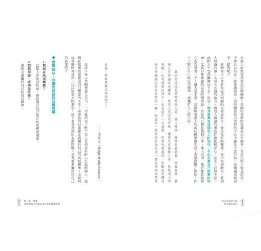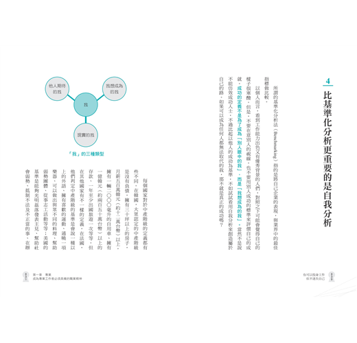 ◆態度——職涯的深度和廣度由態度決定成功的定義不是為了成為「別人眼中的我」,而是「我想成為的我」。如果可以成為任何人都無法取代的我,那才是真正的成功。