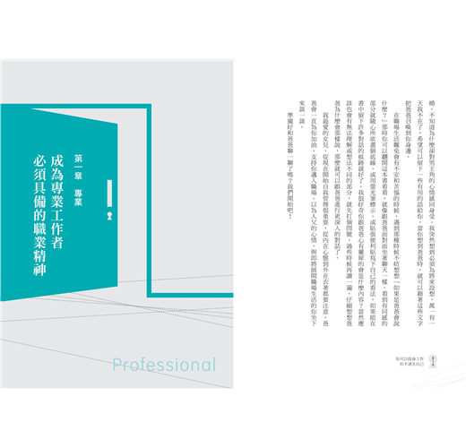 「這是一個轉變很快速的時代,許多人因此在職場上感到高壓、困惑跟痛苦,因此有種人生卡住的狀態。這本書聊了五大面向,包含如何培養『專業』、建立良好的職場人際『關係』、拿出工作『表現』、釐清清晰『目標』和理解『態度』,用深入淺出的方式與故事例子給我們很多工作與生活的啟發。」──布姐,職涯生涯教練