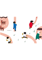 .從具象到抽象:在簡潔優美的詩歌體文本中,透過明亮輕快的的遊戲畫面,搭配具節奏感的文字,先以易引起共鳴的破題,讓孩子移情進入當地兒童的生活現狀;再以他們傳統的詩歌、料理、花布、地毯等豐富的圖像細節,帶出曲折感性的文化鄉愁……