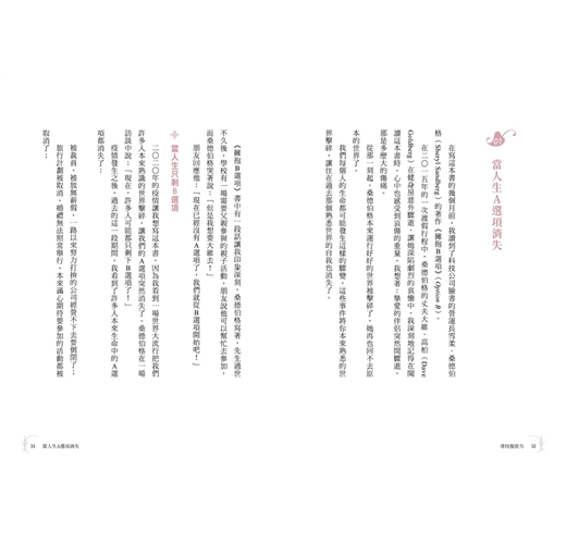 開始動筆寫這本書時,是2020年的6月,6月是台灣的畢業季,這是個充滿興奮,又讓人焦慮茫然的季節。一群新鮮人離開校園,進入社會,腦海中有個對於人生的美好想像,期待生命接下來照著自己所規劃的展開。