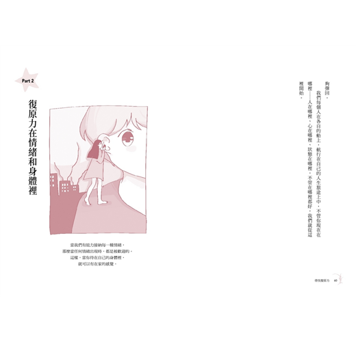 要建立復原力,並不是要你做什麼英勇的行為,而是來自日常生活中的微小事情──來自你如何處理情緒、面對想法、調節身體狀態;來自你能夠走入自己的內心,傾聽自己的聲音,正視自己的恐懼;來自你願意讓自己脆弱,和真實的自己連結,也與他人建立真摯的連結。