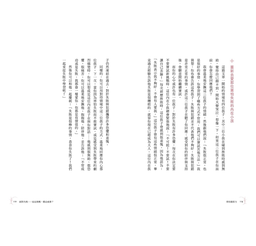 本書沒有艱澀的語言,引述的專家資訊,一經佩萱敘述與歸納,都成了簡單可理解的方向,尤其佩萱在每個段落停下來,羅列與整合操作步驟,將讀者可能不清晰的、不真確明白的部分,或已經認知卻未曾實踐的,透過佩萱的連結與引導,收到融會貫通之效。