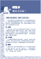 全書共6個LEVEL,每當要進入下一個LEVEL前,最好都來個過關測驗看看自己的能耐,徹底檢視自己的程度是否已經達標,才能按部就班向上挑戰,不會因為越級打怪,結果越學越沒有自信而放棄!
