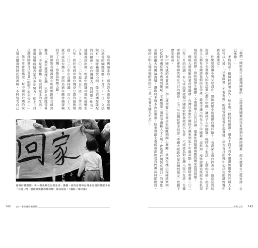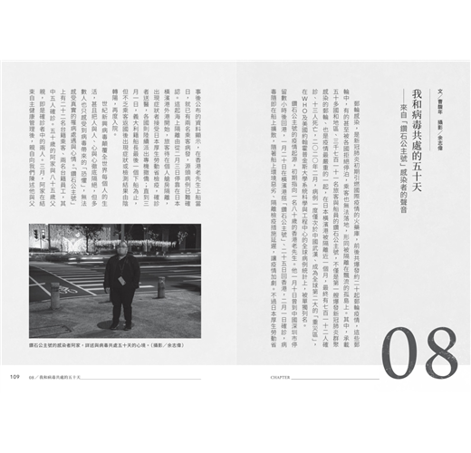 Part III 尋找方舟 08我和病毒共處的五十天──來自「鑽石公主號」感染者的聲音 09抗疫浮生錄──從英國到西班牙,我們陷入道德選擇題 10愛在瘟疫蔓延時──扛著時代巨石的兩岸家庭 11溫州人把病毒帶到義大利?──Prada、Gucci背後華工給世界的解釋 12「你們、我們」思維的代價──因移工宿舍導致疫情失控的新加坡 13希臘難民新危機──防疫標語,成為難民營最諷刺的笑話 【圖文輯】日本東京「自肅」中:疫情下的東奧、櫻花、雪