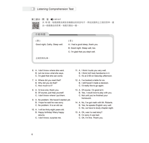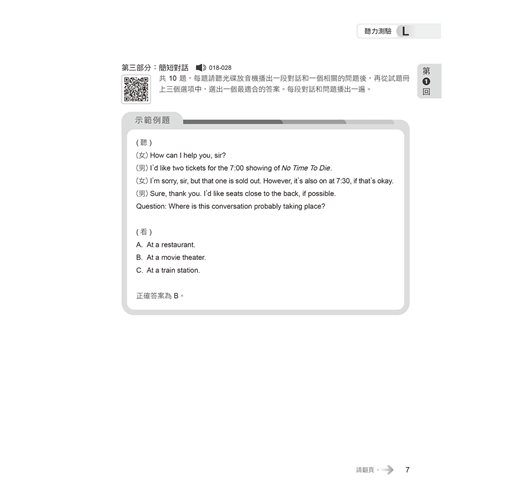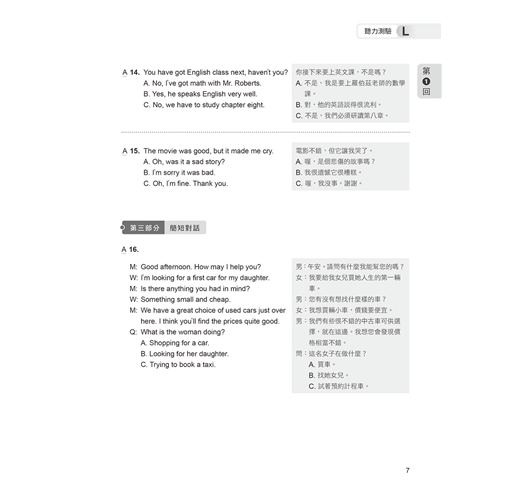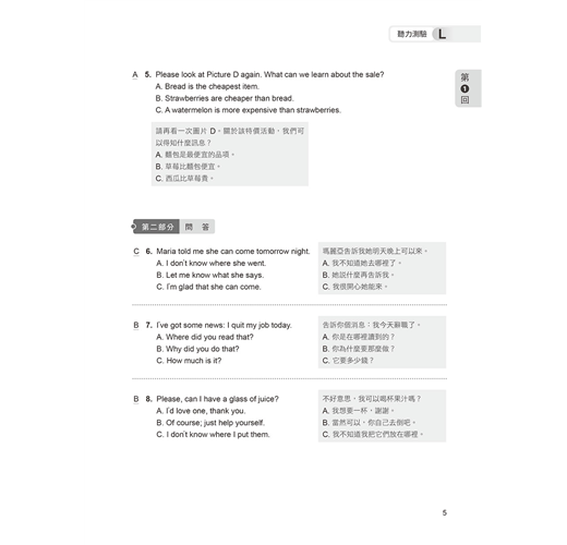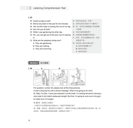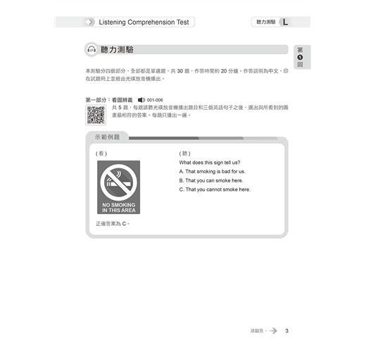 題目難度稍高於正式考題,聽力測驗速度較正式考題略快,並由專業外籍錄音老師錄製,讓你臨場應試無往不利!