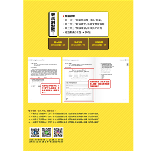 為因應此次改版,本公司亦在第一時間掌握由財團法人語言訓練測驗中心(LTTC)頒布的最新考題,經中外編輯多次研擬、...