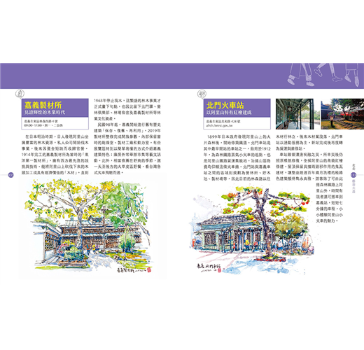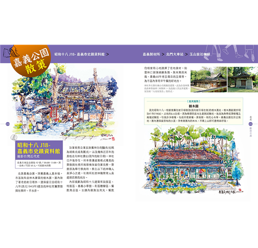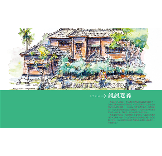 本書作者遍訪嘉義,以水彩速寫記錄這座城市的地景風貌,作品充分展現了溫柔明快的人文生活感。