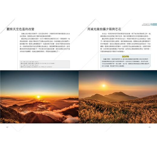 ◆ 帶你掌握最重要的4件事:如何預判天象、掌握山的環境、拍攝係數設定、構圖思考與後製