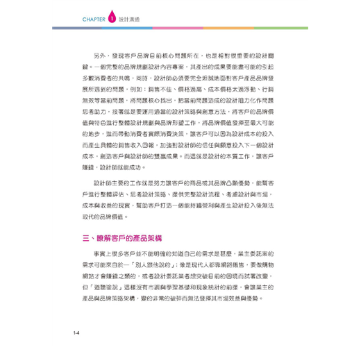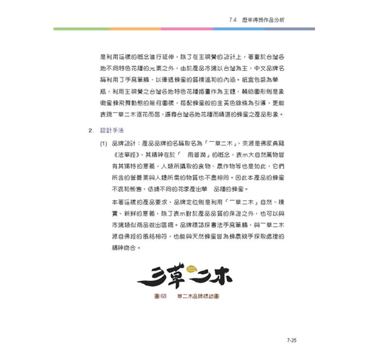 換言之,本書為一本適用於各設計科系於其畢業設計專題、實務型課程、競賽型標等課程所使用,期望本書得以提供一套完整品牌設計執行項目解決方案,以及讓設計科系學生與新銳設計師們參與國際競賽的標準教科書。