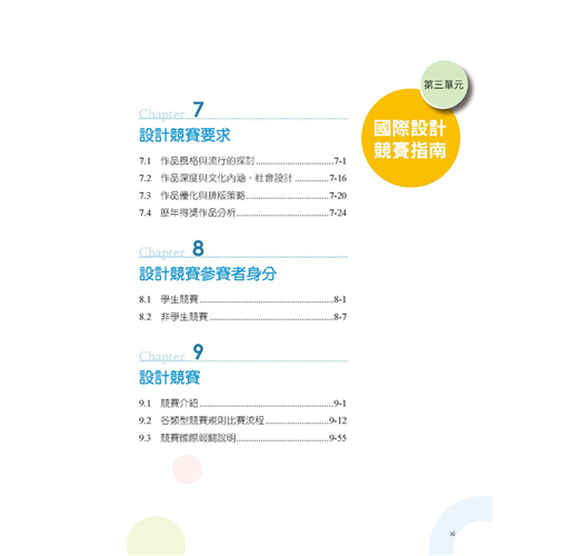 本書以完整設計理論導入,配合具體專案範例一步一步執行,讓讀者可以從理論中看到實踐之具體方案與內容,從而帶動設計實務的教學效益;此外,並於書中提供大量可以供設計科系師生與新銳設計師們參考的國際競賽指南資訊,鼓勵更多優秀年輕設計師參加國際競賽,並達到理解與完善整個設計項目之內容與完整性,增加競賽獲獎機率。