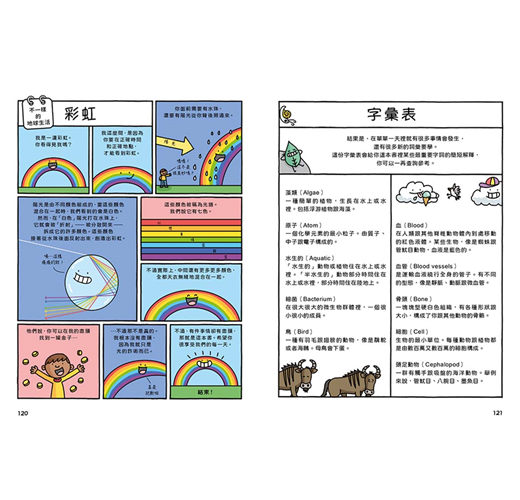 本書以深入淺出的漫畫+圖解形式演繹科普知識,用色鮮明搶眼、筆觸討喜可愛,更將原本枯燥的科學知識,轉化成易讀又生動有趣的內容,讓孩子在彈指翻頁間充滿無窮樂趣、輕鬆學習!