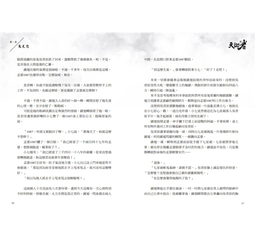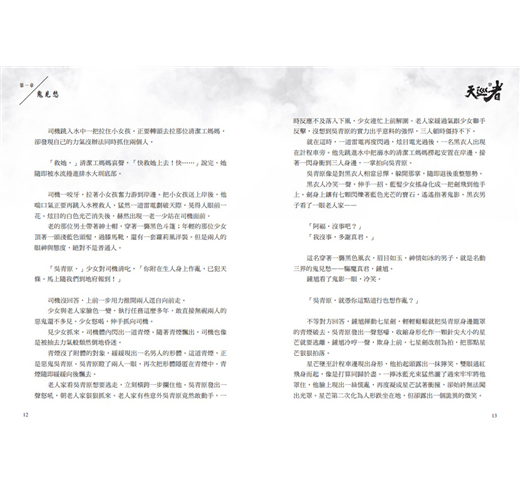 三立華劇「天巡者」由賀軍翔、邵雨薇、周曉涵、楊銘威、陳璽安、程雅晨、張洛偍、簡廷芮、管麟、洪言翔等人主演。小說根據原劇本改寫,除實際戲劇播出內容,另收錄隱藏版情節,分章也與戲劇分集不同。