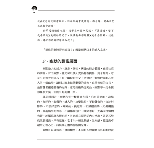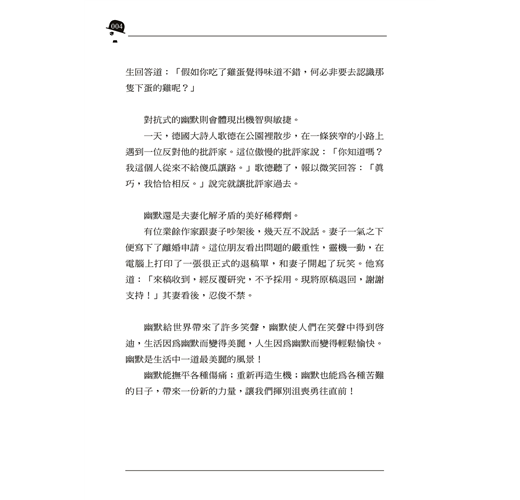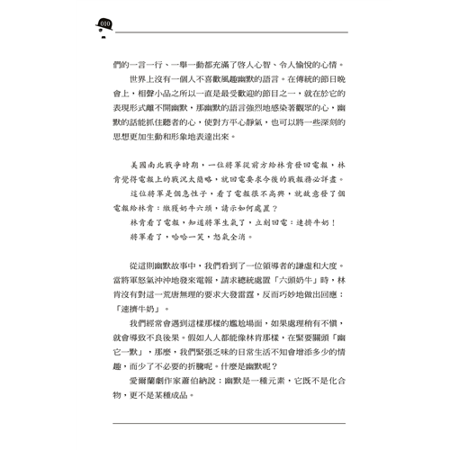 訂購本商品前請務必詳閱退換貨原則。幽默是智慧與才華的顯露。在平靜的生活中,幽默是湖水中的漣漪;在豪邁的奮進中,幽默是激流中的浪花;在失敗的困境中,幽默是黑夜裡的星光。