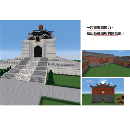 Minecraft的世界是由各式各樣不同材質的方塊所組成的,這些方塊不但會組出草原、山脈、海洋、洞穴等等地形,玩家也可以利用這些方塊,蓋出自己理想中的建築物。在遊戲內寬廣的世界中,想要蓋好一棟建築,要先規劃好空間,甚至做好設計草圖,然後開始整地、營建、裝潢等等工作,讀者們可以藉由完成一棟簡單的建築,拼拼湊湊,訓練大腦的空間管理能力。