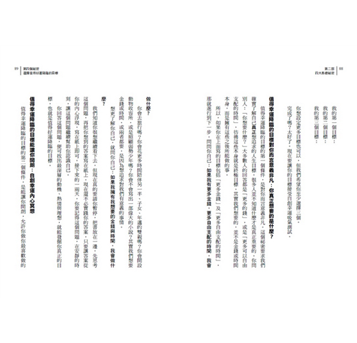 你追求人生目標的方式,可能缺少一個重要的關鍵。我自己,還有我共事過的許多人,都缺少這個關鍵。所以即使你缺少,也有不少人與你同病相憐。太多太多天資聰穎,努力踏實的人,錯過了一條非凡的道路,無法邁向豐沛財富與和諧人生,僅僅是因為沒有在正確的地方尋找。希望你能與我一起,用心找出正確的地方。花點時間全神貫注在這件事上,你會獲得受用一生的寶藏。