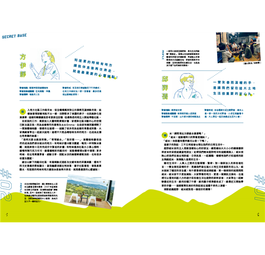 我認為,每個人的秘密據點或是和所屬團體共享的據點中,必定有著近似的條件,得以觸發和過往記憶重疊的愉悅、放鬆、穩定……等正向記憶,才會促使人一而再的回返停留,構築成現在另一個可以安放自我的地方。