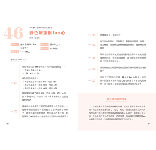 在各玩法中放入設計者在現場帶領中的經驗分享,分享在帶領時要注意的細節,讓大家在帶領活動時,能更快速上手。