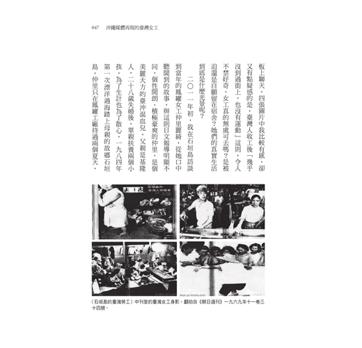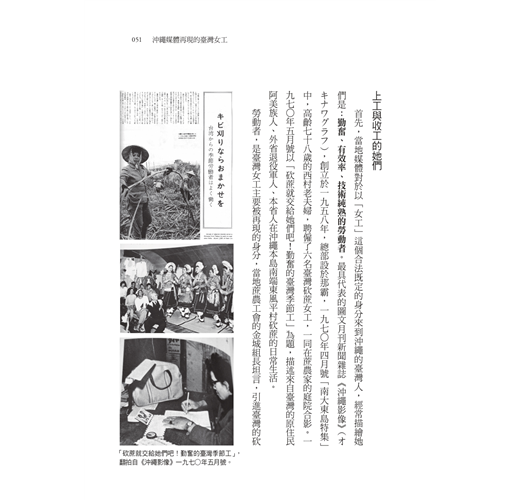 先來看看女工本身的背景條件。我於二○○六至二○一一年、二○一五至二○一八年兩個階段,在大林訪談了二十一位返回女工。許多人彼此是老鄰居或具備血緣關係的親友,出國當時約三、四十多歲,正值壯年,赴沖時均為已婚。重返一九六○至七○年代保守封閉的臺灣社會,一位目不識丁的貧困農村已婚女性,要想長距離的向外移動,甚至漂洋過海出國,談何容易。她們來沖的主要目的,就是能在短期內賺到較多的錢,所有女工都是為了脫貧、改善夫家的經濟狀況而向外移出。且她們均為已婚,心繫臺灣的夫家及其子女;不識字也不諳日語,和當地工人或一般島民的互動,以比手畫腳、雞同鴨講居多,和頭家蔗農的溝通也很勉強,仍得透過翻譯或筆談。家住臺中的許哲夫,就曾擔任大東糖業株式會社的連絡員及移工的口譯員。因此,女工強調在島上最快樂、最興奮的事就是領薪水,對於其它與此無關的人、事、地、景、物,似乎沒有太多餘心餘力關注,也或許根本沒有興趣。其次,這和女工在南大東島上停留期間過短、生活作息封閉等實際生活密不可分。她們在當地的時間並不長,通常是從年尾到隔年的四、五月這段時期,配合甘蔗採收與製糖的季節而停留,頂多五、六個月,少則二、三個月。且她們的生活作息封閉,一天的作息是在蔗園、宿舍兩地間來回穿梭,生活的絕大多數時間,都是和同樣身為女工的臺灣人綁在一起,朝夕相處。(未完待續)