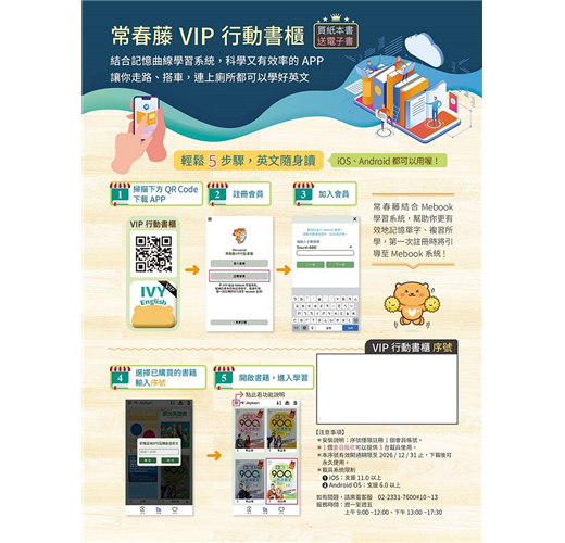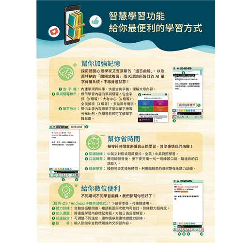 【提供iOS/Android手機學習模式】:下載書本後,可離線使用。