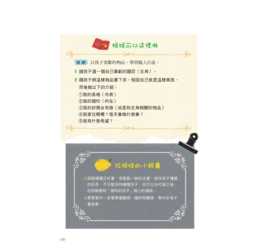 所以,期待孩子會寫作,並且樂意寫作,必須先滋養孩子的寫作能力,讓孩子的情感和文字產生連結,也要讓孩子在寫作過程中,獲得成就感。而媽媽就是其中的推手。