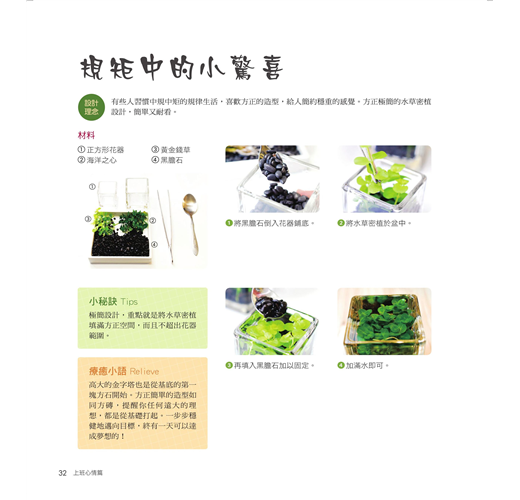 附有水草小盆栽的栽培小秘訣,並教你如何簡單在窗外就建立專屬的迷你水草養殖場,自給自足好方便。