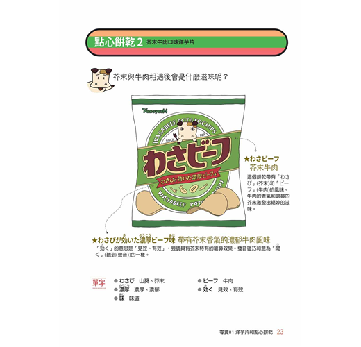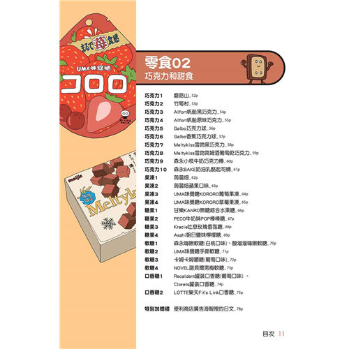 每次去日本旅行都會到處尋找美食與點心,有了這本《用零食學日語》完全可以當工具書使用,商品插圖看了就飢腸轆轆、大飽眼福,而且輕鬆記住相關日語單字,真的好實用!