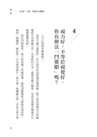 仔細想想,當我們聽到一些令大腦當機的錯愕訊息,是否會下意識的翻白眼,或是急得視線四處亂轉?反過來說,作者主張視覺訓練可以防失智、改善心情等,這些乍聽之下有點神奇的效果,是不是真的有可能實現?我覺得不妨以開放的心態嘗試看看,也許效果就是那麼神奇也說不定。總之動動眼,沒壞處。