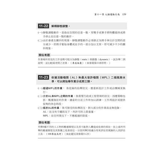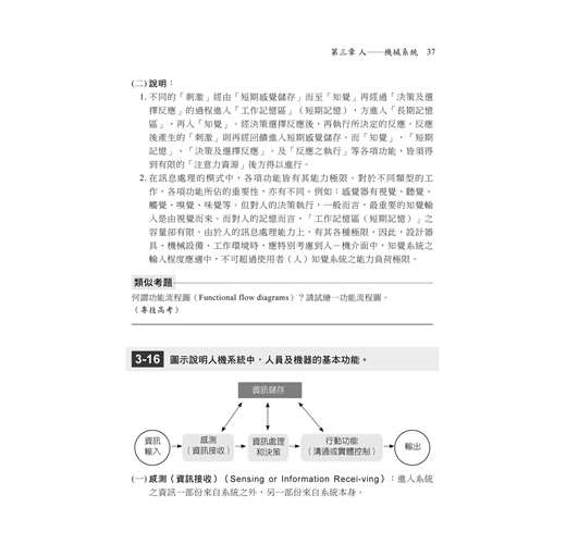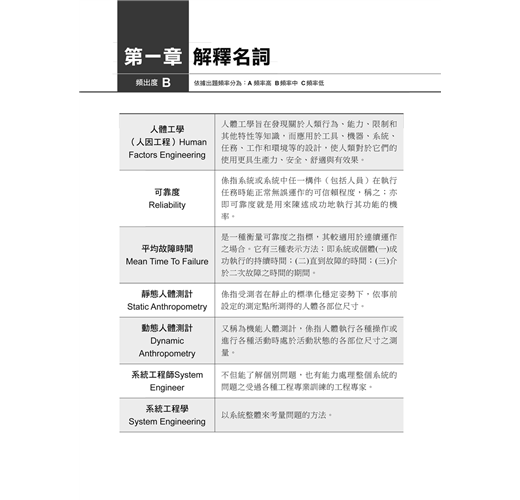 本書的特點是收集歷年來公務高考,專技高考及技能檢定的試題,加以歸納、整理、解析,並收集多本教科書之精華部份,將「人因工程」的內容由分為十六章,以解題的方式編寫,其解析的特點在簡單扼要,由淺入深,條例分明,便於吸收。由於歷年的人因工程相關考題,涵蓋範圍很廣,因此,要能掌握答題要領的關鍵在於有經驗的名師為你解題,藉由名師的參考答案,你能更精確地理解答題要領所在。