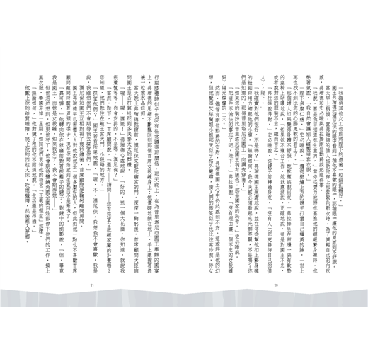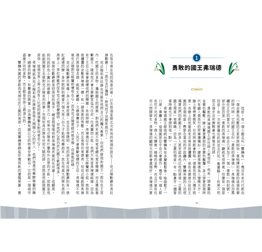 「我確實對他們很好,不是嗎?」弗瑞德國王焦慮地說,並在侍從幫他扣上緊身褲的鈕釦時用力縮起他的小腹。「無論如何,我今天都必須看起來光鮮亮麗,不是嗎?你們是知道的,那個普里塔尼亞國王一向講究穿著!」