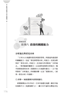 「四大關鍵能力」依序分成四部,每一部都會先淺談理論,再提供一至兩則相關實踐案例,理論以利讀者解讀實踐案例,看完案例之後再回顧理論則可更加深對理論的理解。本書共收錄六則案例,都是發生在個案公司的真實故事。由於內容皆為描述實際發生的情節,彷彿親臨現場,觀察每項關鍵能力的實踐過程,有助於體會並習得四大關鍵能力。