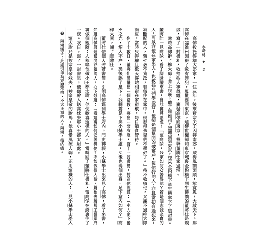 梁山泊一百零八條好漢嘯聚的故事,自南宋以來即流傳於世,後經文人綴集成長篇小說《水滸傳》。書中最大的特色,在描寫事件、人物深刻佳妙,栩栩如生,且情節鋪陳布局極為緊湊,引人入勝。小說中花和尚大鬧桃花村、林教頭風雪山神廟、景陽岡武松打虎等等精采故事,人們早已耳熟能詳。讀《水滸傳》,看草澤英雄行俠仗義,為世人發不平之鳴,是何等大快人心!本書採用通行最廣的七十回本,頁端及頁末分別附有金聖嘆批語和詞語方言注釋,陪您一路痛快地造訪水滸英雄!