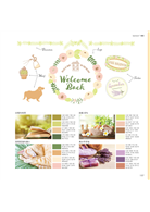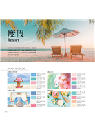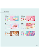 「粉嫩可愛」、「商務」、「成熟優雅」、「不思議奇幻」、「健康‧舒適」、「世界各國、「情感」、「四季節日」與「雀躍‧開心」,以這9個配色意象為題,用比第一輯更加升級的豐富照片搭配插畫範例來共同做介紹。