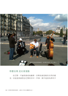 等到她回台之後,又聽說她考上了街頭藝人的執照。你也許無緣在台北街頭的夜色中,聽到她那讓你靈魂享受安息的歌聲,但是你絕對可以在讀此書時,聆聽到她在巴黎街頭,穿梭在大街小巷,踏在古老磚塊砌成的馬路上,與生命深層感動相遇的自在旋律。