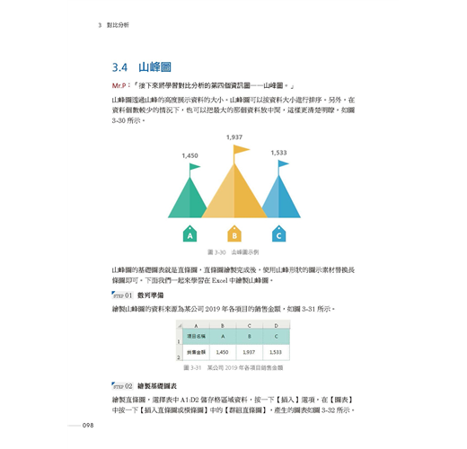 第3章 對比分析:常見的對比分析類資訊圖的繪製方法與技巧,包括手指餅圖、箭頭圖、排行圖、山峰圖、人形對比圖、雷達圖。