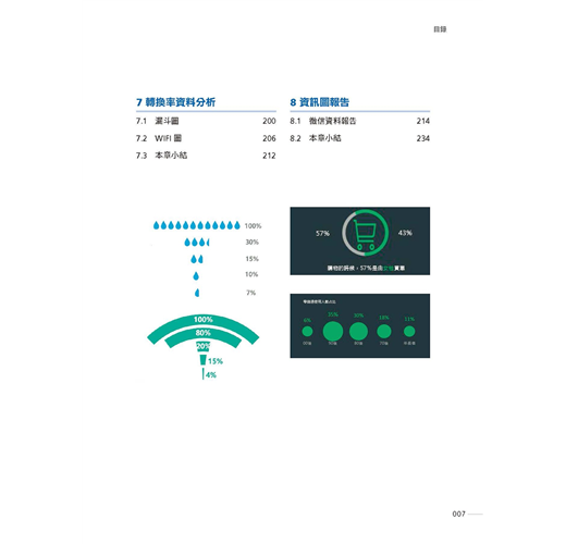 第7章 轉換率資料分析:常見的轉換率分析類資訊圖的繪製方法與技巧,包括漏斗圖、WIFI圖。