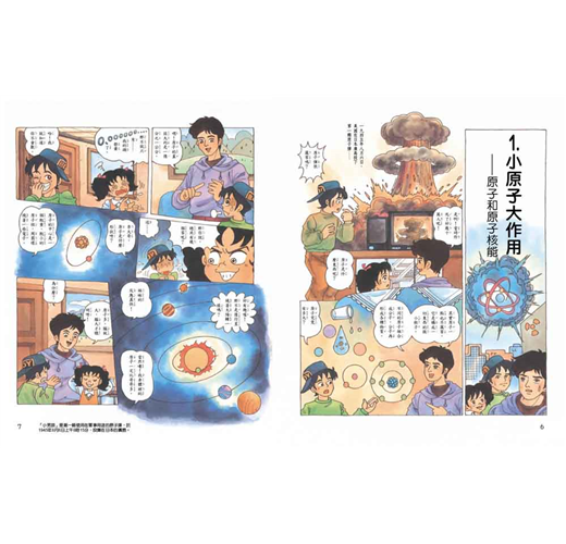 這本《原子大作用》把生澀的自然科學變得更平易近人。本書內容都是舉凡生活周遭食衣住行等事物,一共有三十一個單元。每單元分兩部分,先是一個漫畫故事輕鬆帶入主題,之後就是進階的知識,非常適合國小中高年級到國中的小讀者閱讀。
