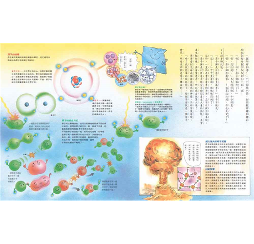 這本《原子大作用》把生澀的自然科學變得更平易近人。本書內容都是舉凡生活周遭食衣住行等事物,一共有三十一個單元。每單元分兩部分,先是一個漫畫故事輕鬆帶入主題,之後就是進階的知識,非常適合國小...