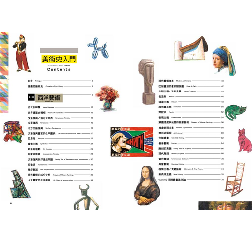 全書分為「西洋藝術」與「日本藝術」兩大脈絡,追溯古代先民美感意識的萌芽與流變,並介紹當代值得注目的藝術家。